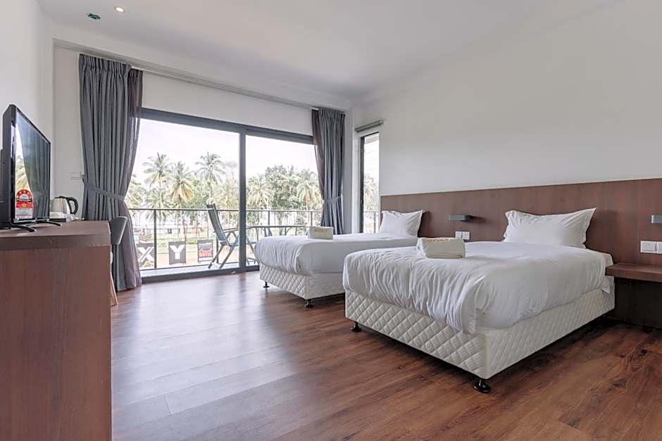 On-site Cha Cha Moon Seafood Restaurant provides dining options without stepping off the property. Room choices include a Deluxe King (301 sqft) with a king bed, a Deluxe Twin (301 sqft) with two twin beds, and a Townhouse (HolidayHome) with 2 bedrooms and 1001 sqft, offering variety for different travel needs.